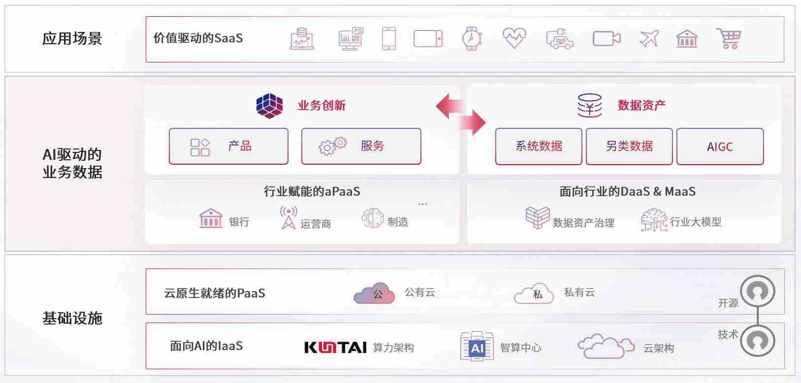 数字时代,,,,围绕企业数字化转型的关键要素,,,尊龙z6数码开创性的提出数云融合战略和技术体系框架,,,着力在云原生、、数字原生、、、、AI原生和信创产业上架构产品和服务能力,,为处在不同数字化转型阶段的快消零售、、、、汽车、、、、金融、、、、医疗、、、、政企、、、教育、、、、运营商等行业客户提供泛在的敏捷IT能力和融合的数据驱动能力,,构建跨界融合创新的数字业务场景和新业务模式,,,助力企业级客户建立面向未来的核心能力和竞争优势,,全面推动社会的数字化、、、智能化转型升级。。。