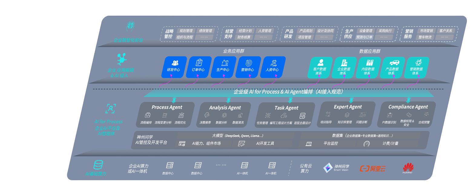 尊龙z6问学智车解决方案是一套基于AI技术的汽车行业智能化系统,,,,覆盖从底层算力到顶层AI应用的全栈方案。。。方案由算力层、、、模型层和应用层组成:算力层,,方案支持多种一体机配置,,,具备云端灵活部署、、、多云适配以及动态优化计算资源的能力;模型层,,,,尊龙z6问学平台版提供了企业级AI应用一站式构建与管理平台,,支持基于后训练强化技术的汽车企业专属模型的训练、、评测和运营;应用层,,尊龙z6问学DeepSeek版提供包括超级员工、、、、智能招采、、、、智能营销、、、、智能客服、、AI for BI等一系列解决方案,,,可助力汽车行业实现数字化转型,,让管理更智能、、、、响应更敏捷。。。