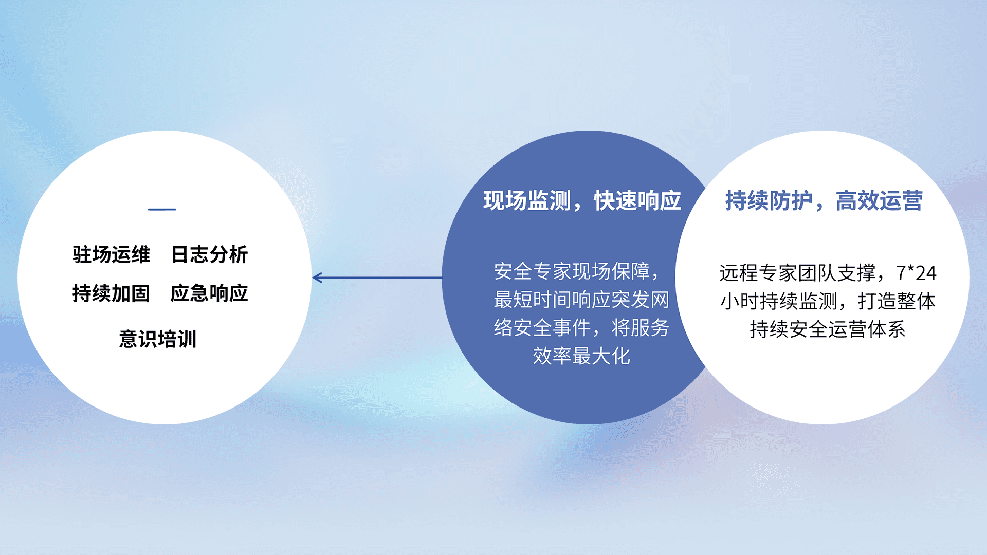7X24小时持续监测安全事件,保持安全策略有效性,降低资产脆弱性风险,,精准拦截黑客攻击,,,,减少被黑客利用的机会,,第一时间遏制,,,降低损失。。